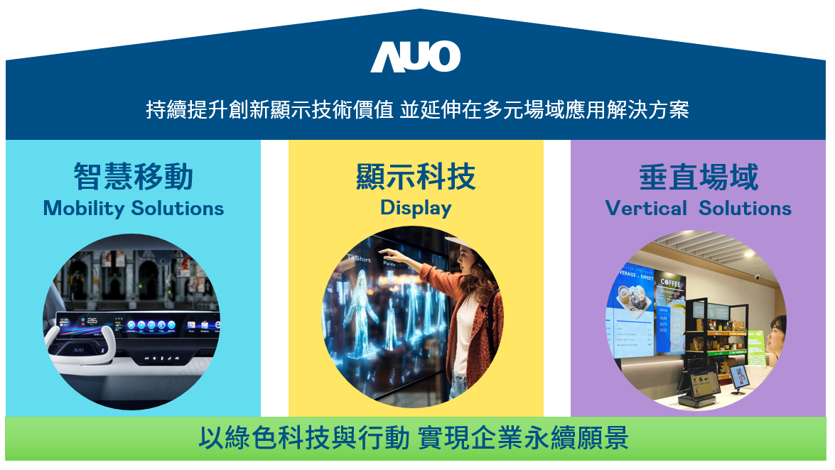 我們持續推動「雙軸轉型」,在精進顯示技術附加價值(Go Premium),與深化垂直市場應用(Go Vertical)的策略下,對應人生就是搏的優勢競爭力與趨勢,我們奠定顯示技術智慧移動垂直場域三大永續營運支柱,在顯示技術領域的根基之上,延伸布局多元場域應用解決方案。將先進顯示科技助力智慧移動及垂直場域發展,並以綠色科技與行動為實踐,在轉型之路上貫徹永續經營之願景。